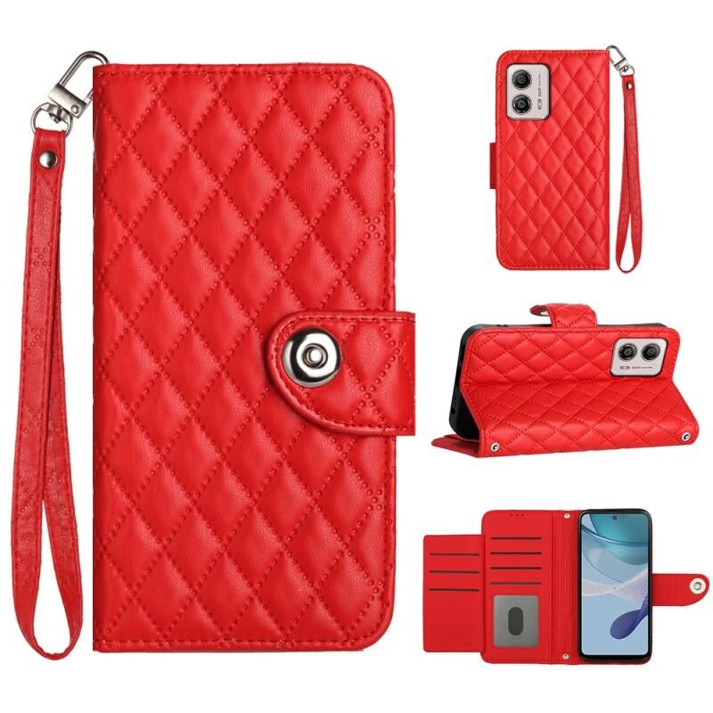 Για Motorola Moto G53 / G23 / G13 Rhombic Texture Flip δερμάτινη θήκη τηλεφώνου με κορδόνι (κόκκινο)