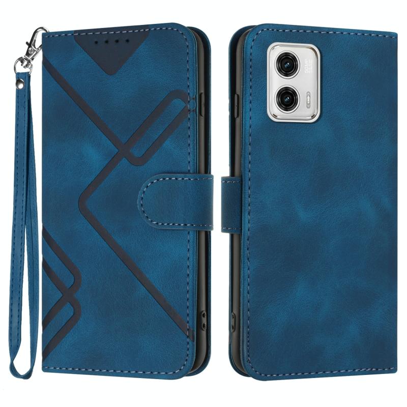 Θήκη κινητού τηλεφώνου Motorola Moto G53 Line Pattern Skin Feel Leather (Βασιλικό μπλε)