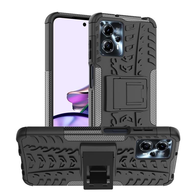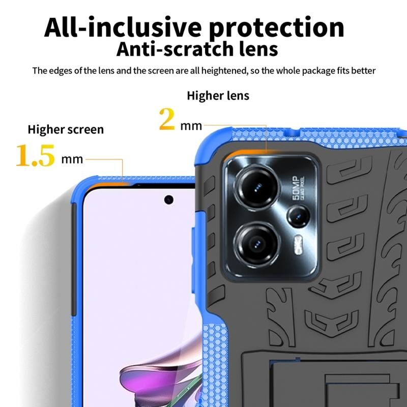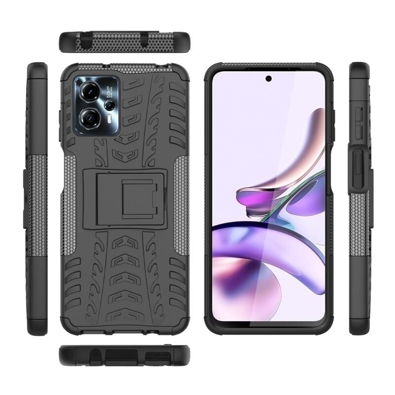 Για Motorola Moto G53 Tire Υφή TPU + PC τηλέφωνο υπόθεση με θήκη (Μαύρο)