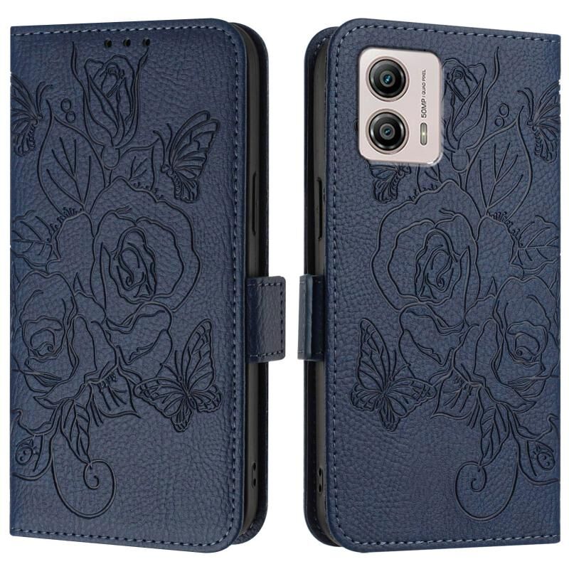 Για Motorola Moto G53Y 5G / G53J 5G Ανάγλυφο Rose RFID Anti-theft Δερμάτινη θήκη τηλεφώνου (σκούρο μπλε)