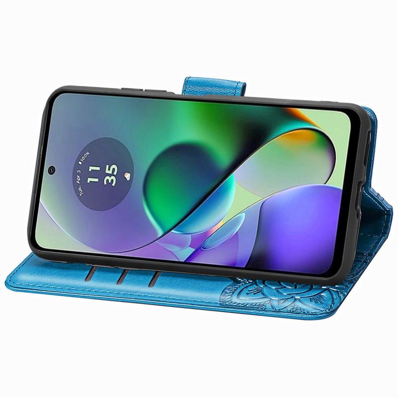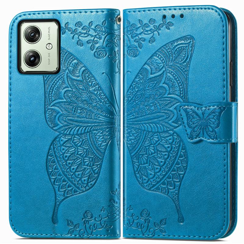 For Motorola Moto G54 5G Butterfly Love Flower Embossed Leather Phone Case(Blue)