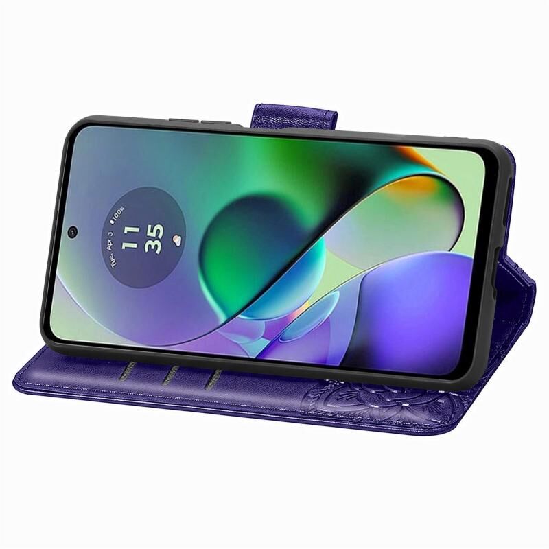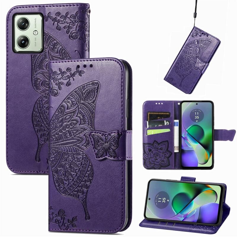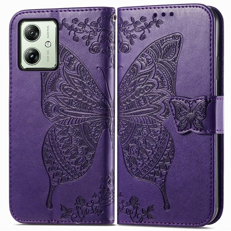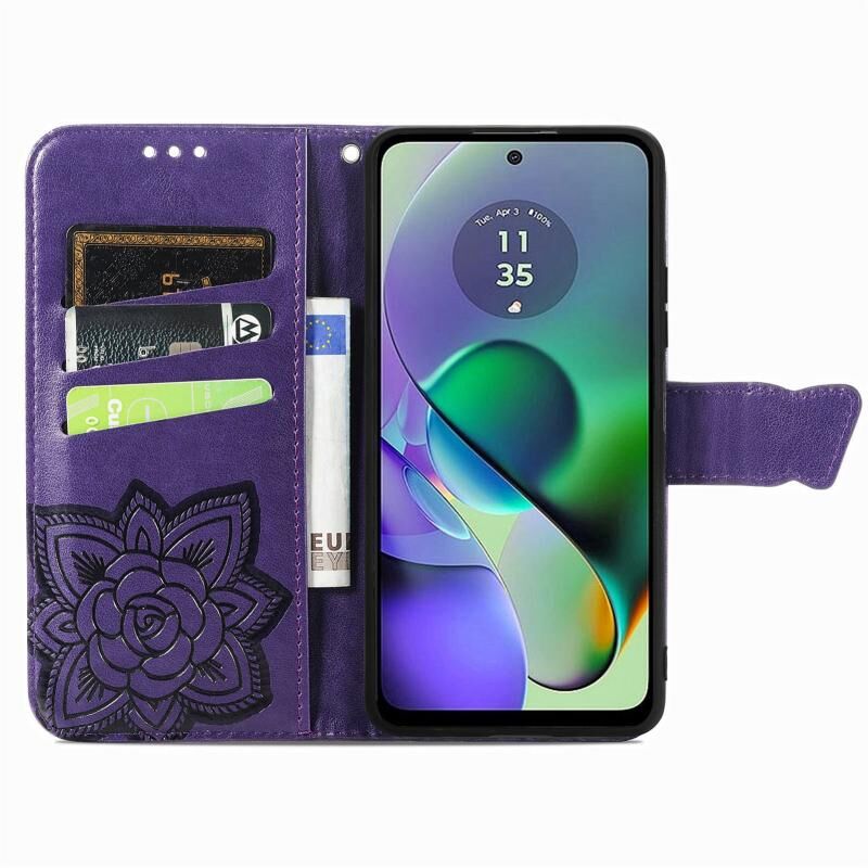 Θήκη τηλεφώνου δερμάτινη ανάγλυφη με σχέδιο πεταλούδας και λουλουδιών για Motorola Moto G54 5G (Μαύρο)