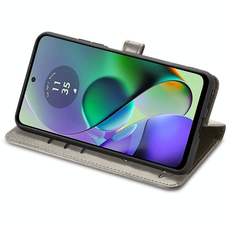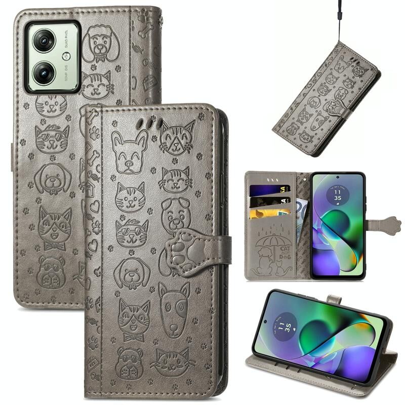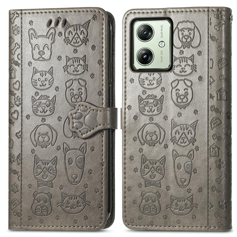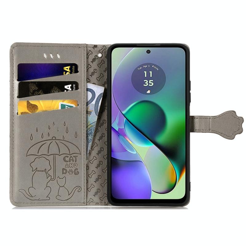 Θήκη Δερμάτινη με ανάγλυφο σχέδιο γάτας και σκύλου για Motorola Moto G54 5G (Γκρι)
