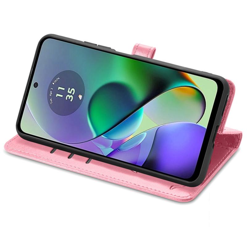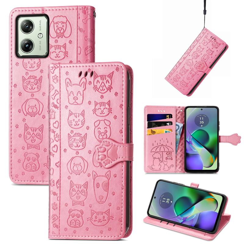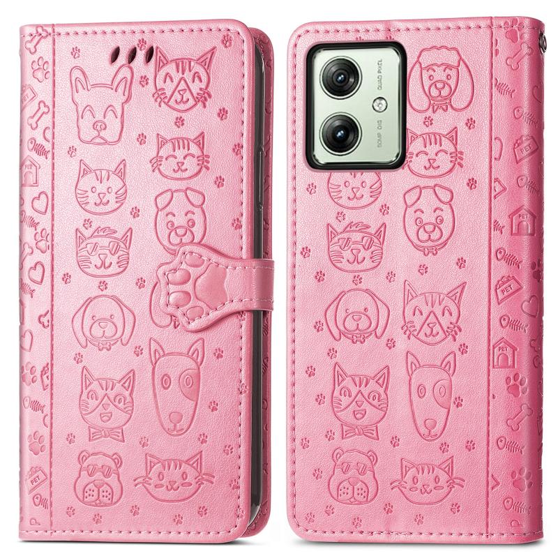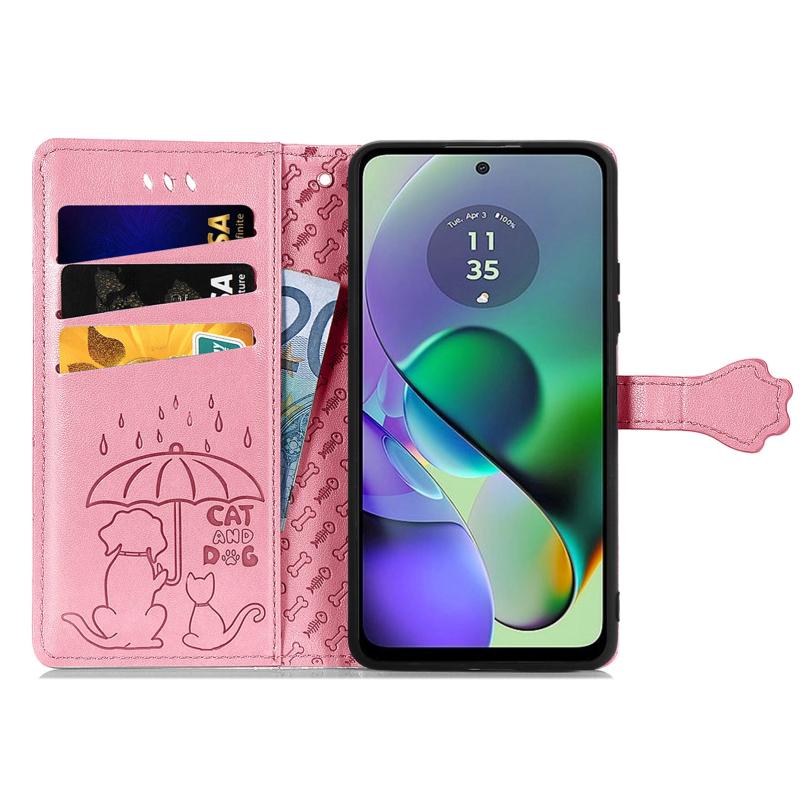 Θήκη Δερμάτινη με ανάγλυφο σχέδιο γάτας και σκύλου για Motorola Moto G54 5G (Ροζ)