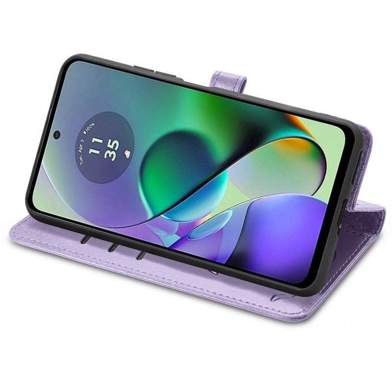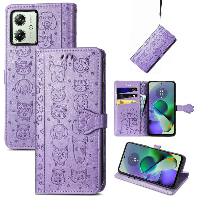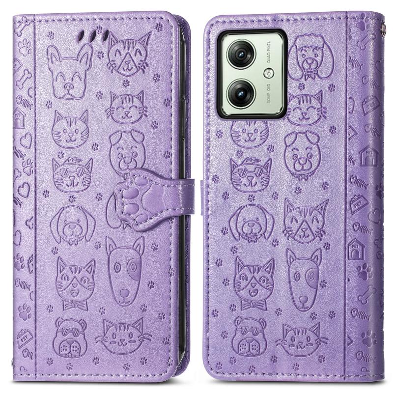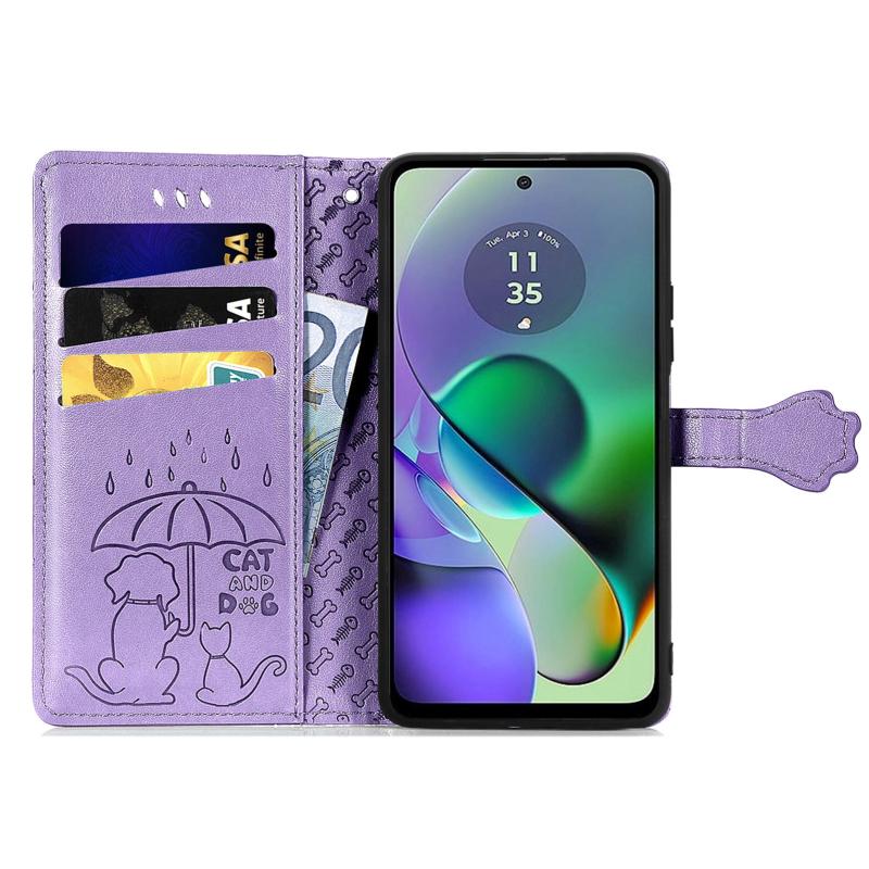 Θήκη Δερμάτινη με ανάγλυφο σχέδιο γάτας και σκύλου για Motorola Moto G54 5G (Μωβ)