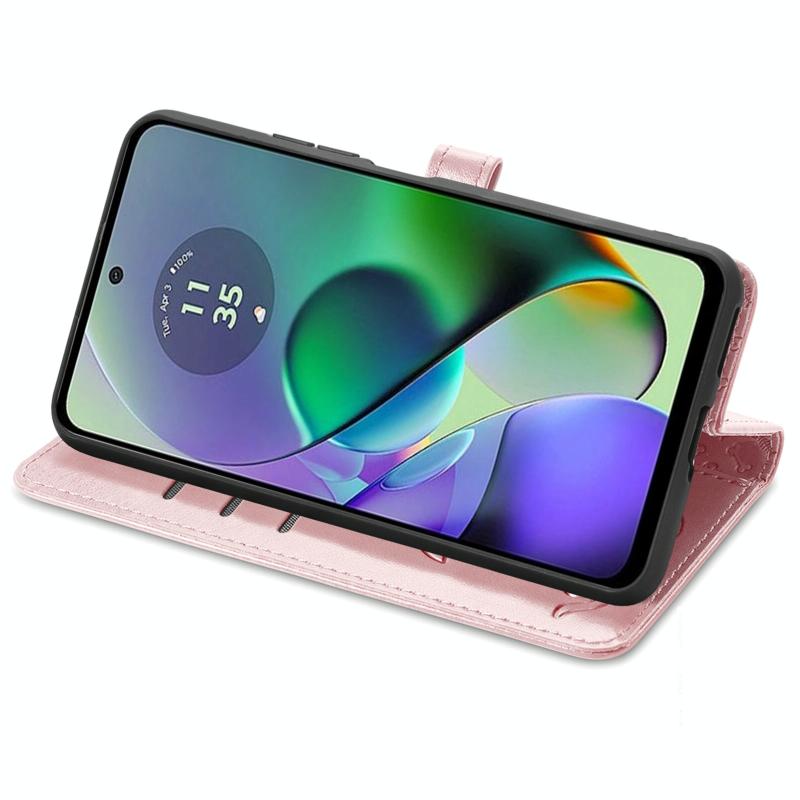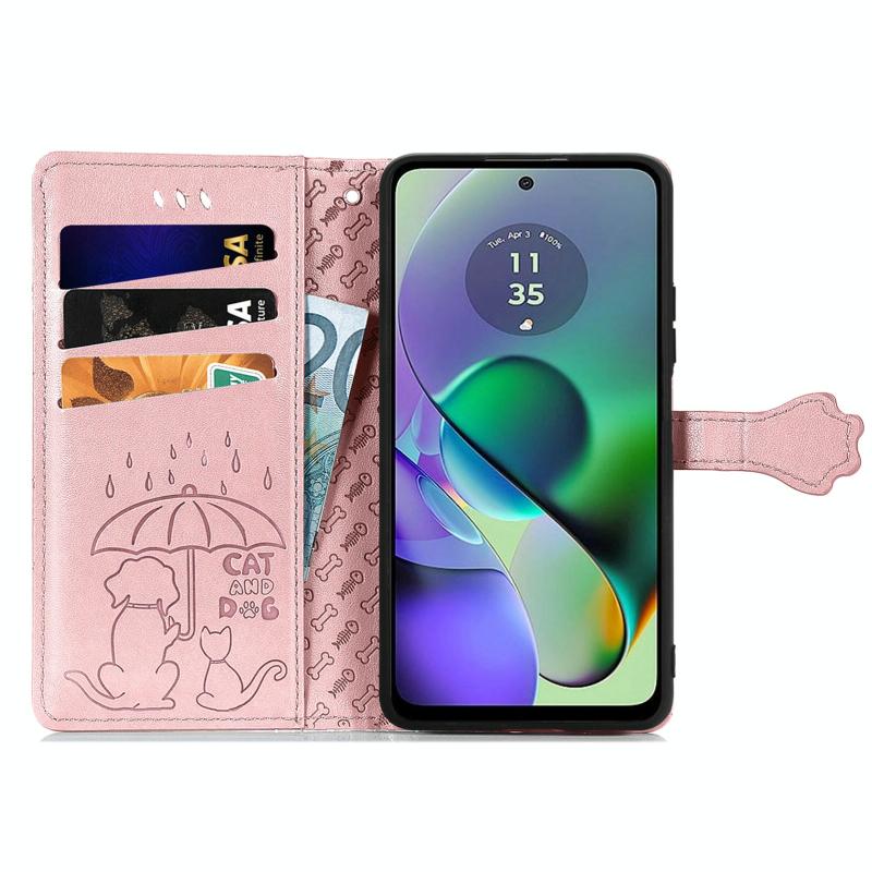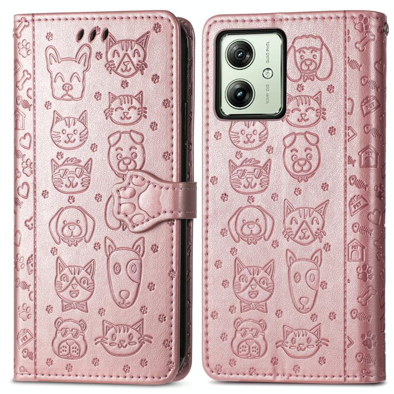 Θήκη Δερμάτινη με ανάγλυφο σχέδιο γάτας και σκύλου για Motorola Moto G54 5G (Ροζ Χρυσό)