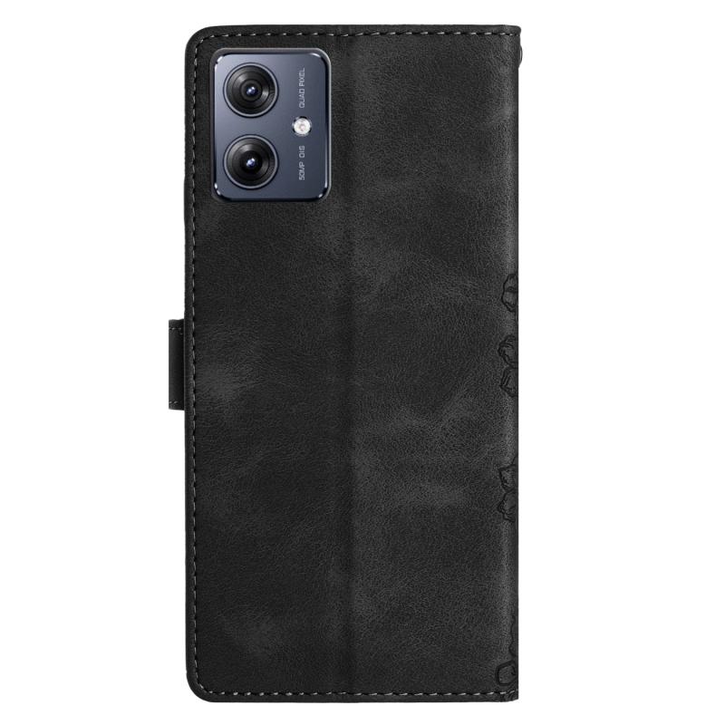 For Motorola Moto G54 5G Cherry Blossom Butterfly Skin Feel Embossed PU Phone Case(Black)