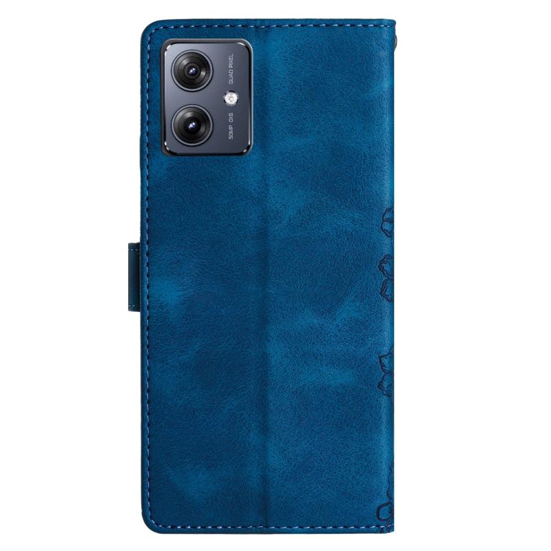 For Motorola Moto G54 5G Cherry Blossom Butterfly Skin Feel Embossed PU Phone Case(Blue)