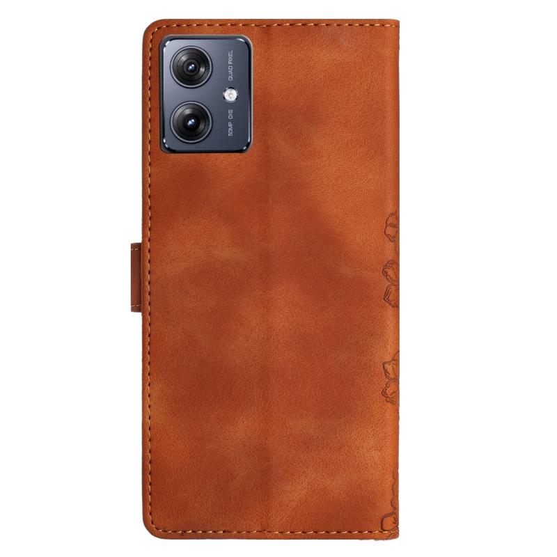 Θήκη κινητού τηλεφώνου Motorola Moto G54 5G Cherry Blossom Butterfly Skin Feel Embossed PU (Κόκκινη)