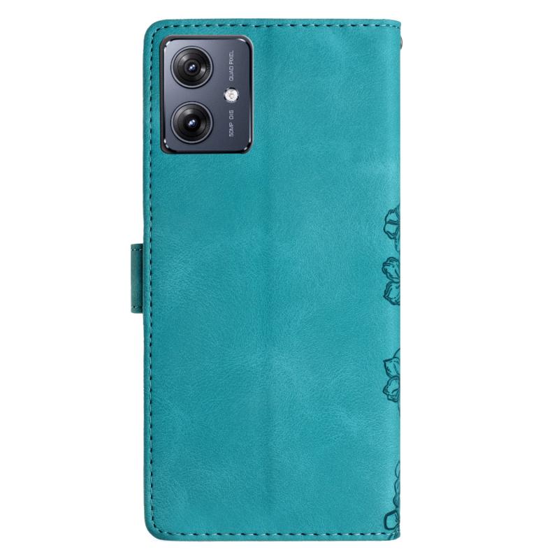 For Motorola Moto G54 5G Cherry Blossom Butterfly Skin Feel Embossed PU Phone Case(Green)