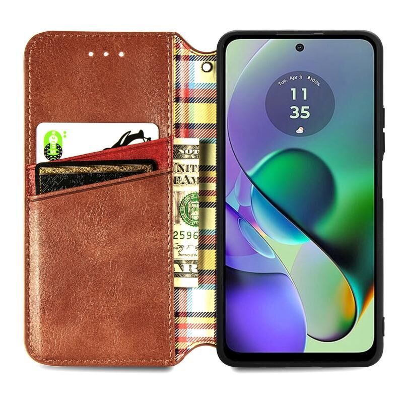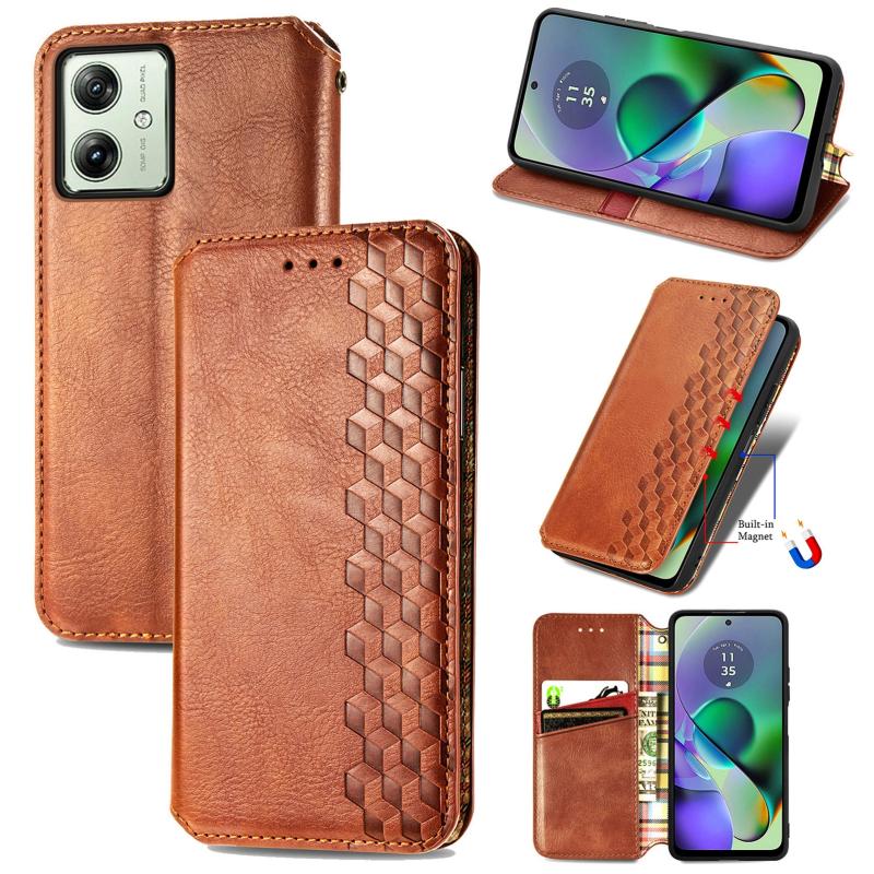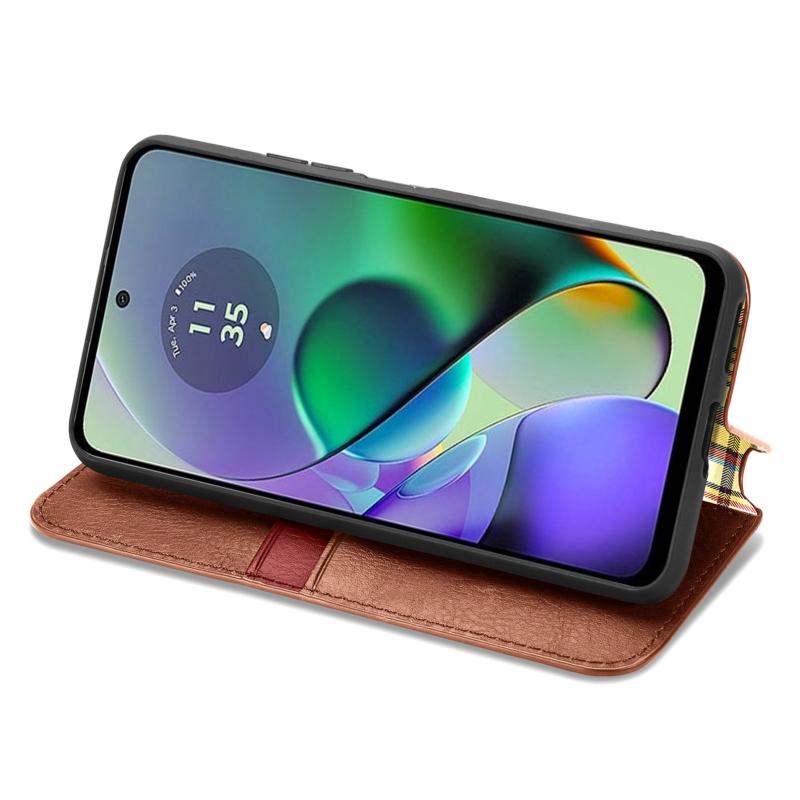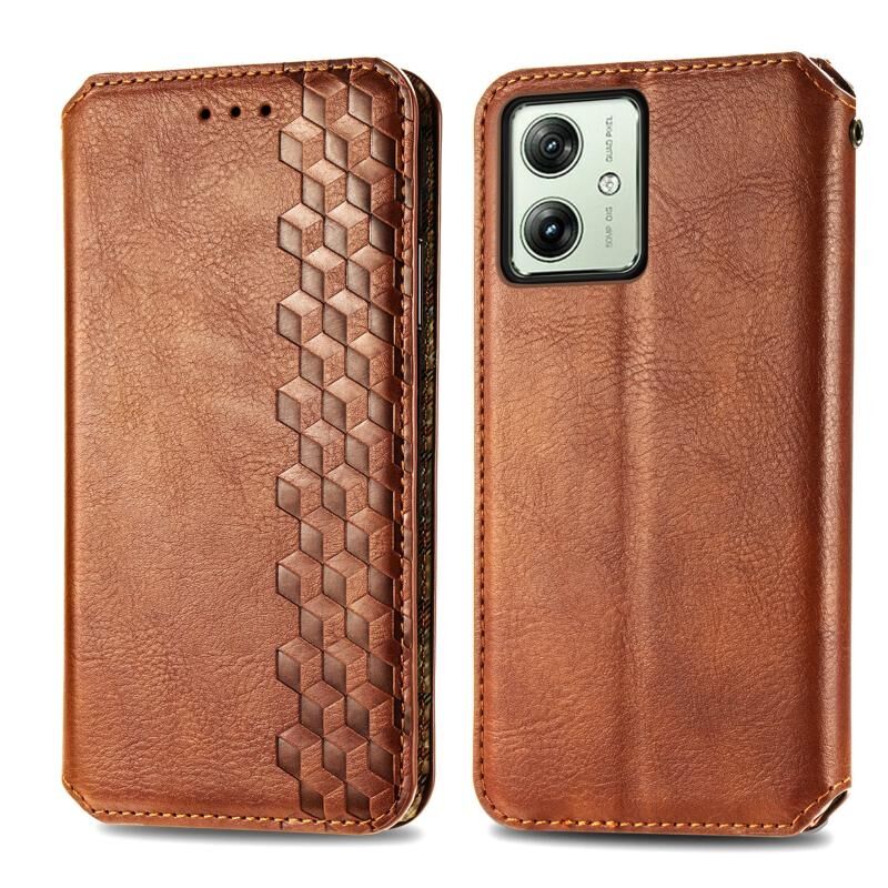 Για Motorola Moto G54 5G Θήκη Δερμάτινη Μαγνητική Cubic Grid (Καφέ)