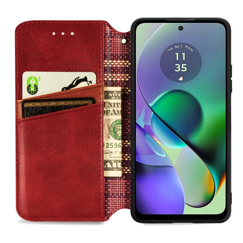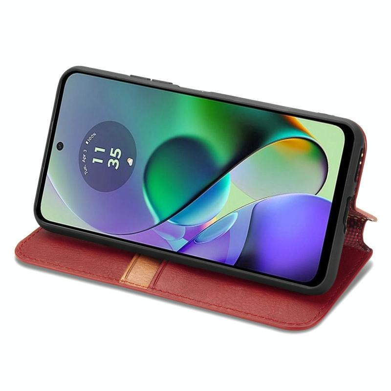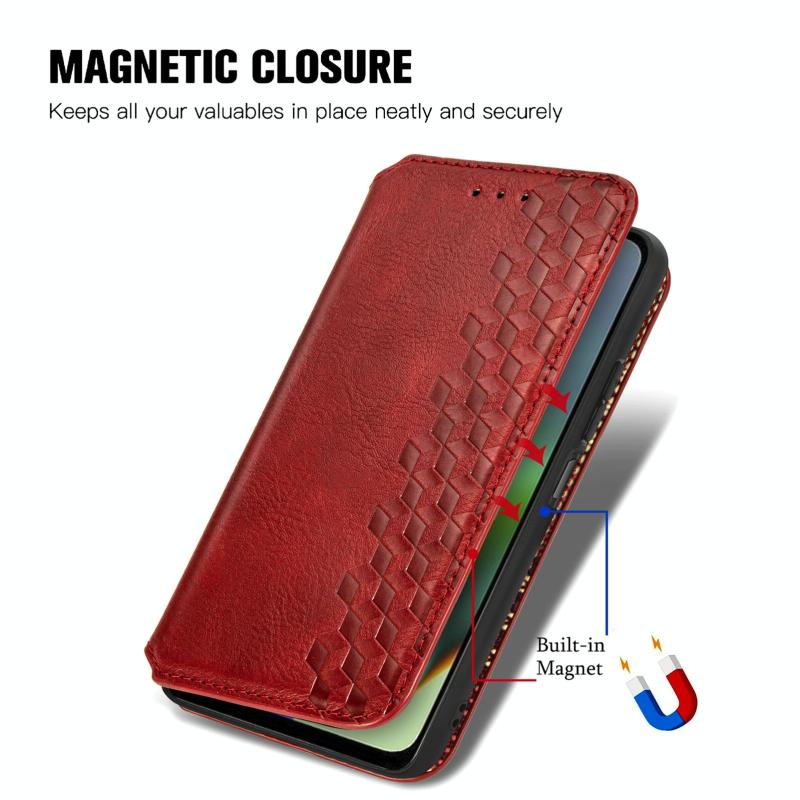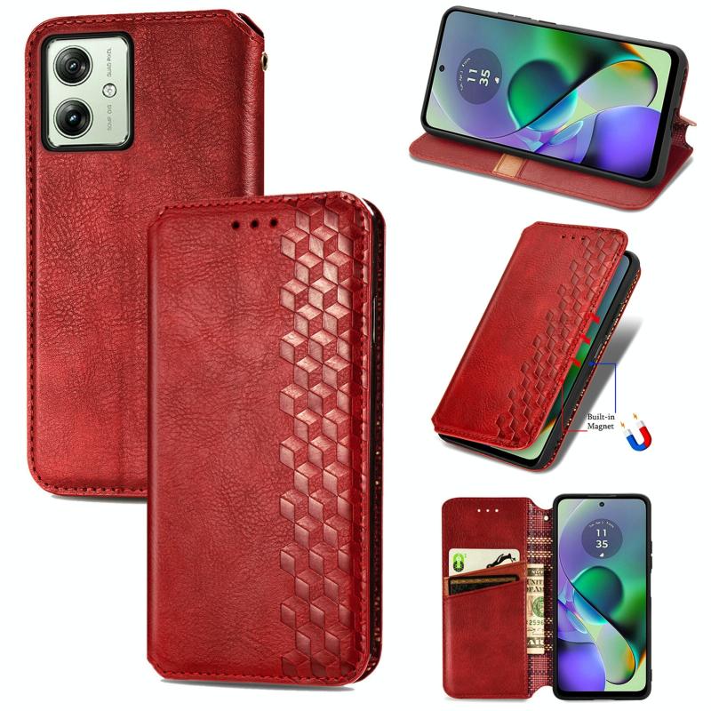 Για Motorola Moto G54 5G Θήκη Δερμάτινη Μαγνητική Cubic Grid (Κόκκινο)