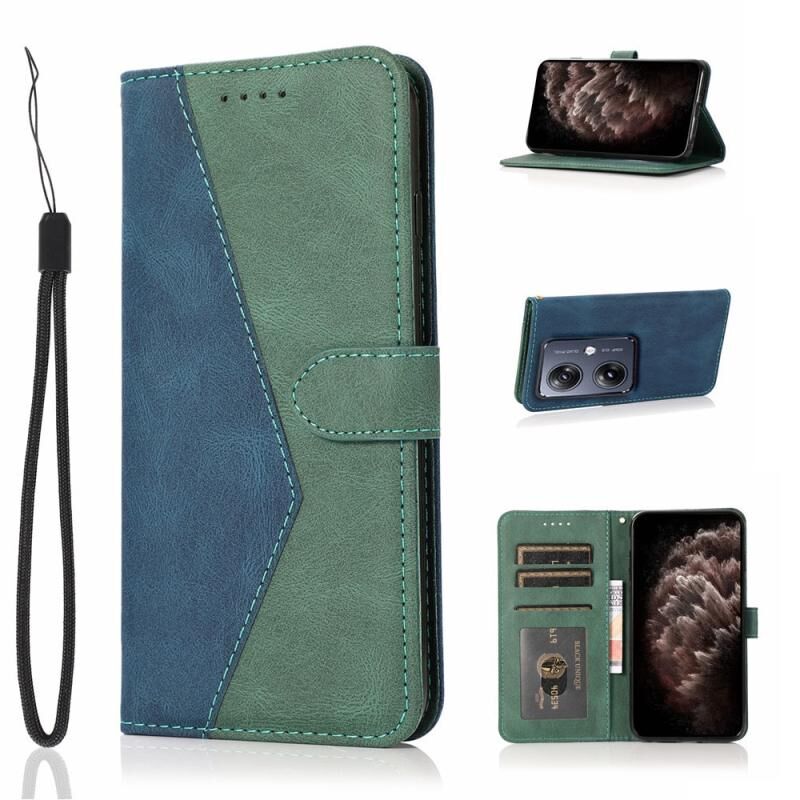 Για Motorola Moto G54 5G Διπλό χρώμα ραφή δερμάτινη θήκη τηλεφώνου (μπλε πράσινο)