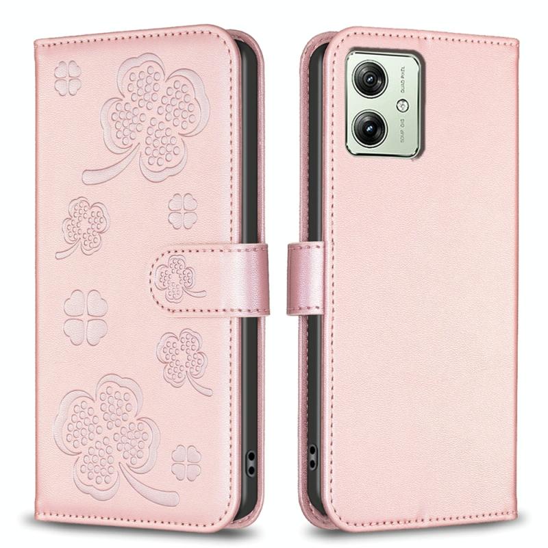 For Motorola Moto G54 5G EU Edition Four-leaf Embossed Leather Phone Case(Pink)
