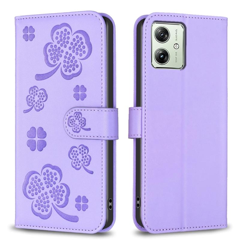 For Motorola Moto G54 5G EU Edition Four-leaf Embossed Leather Phone Case(Purple)
