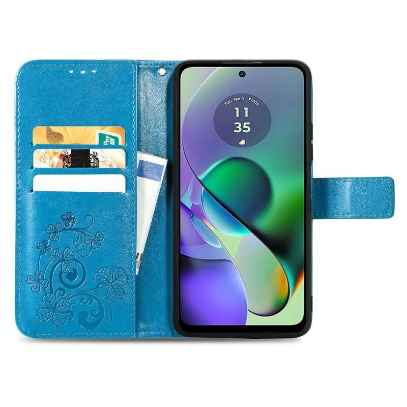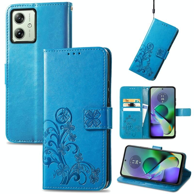 Για Motorola Moto G54 5G τετράφυλλο κούμπωμα ανάγλυφη δερμάτινη θήκη τηλεφώνου (μπλε)