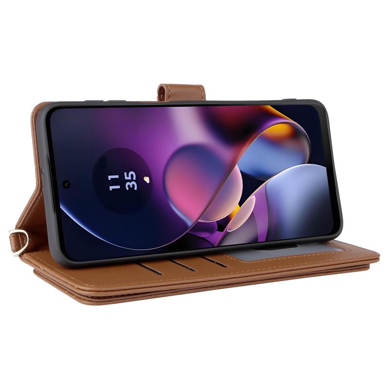 For Motorola Moto G54 5G / G54 Power 5G Multifunctional 6-Card Slots Leather Phone Case with Wrist Strap(Brown)