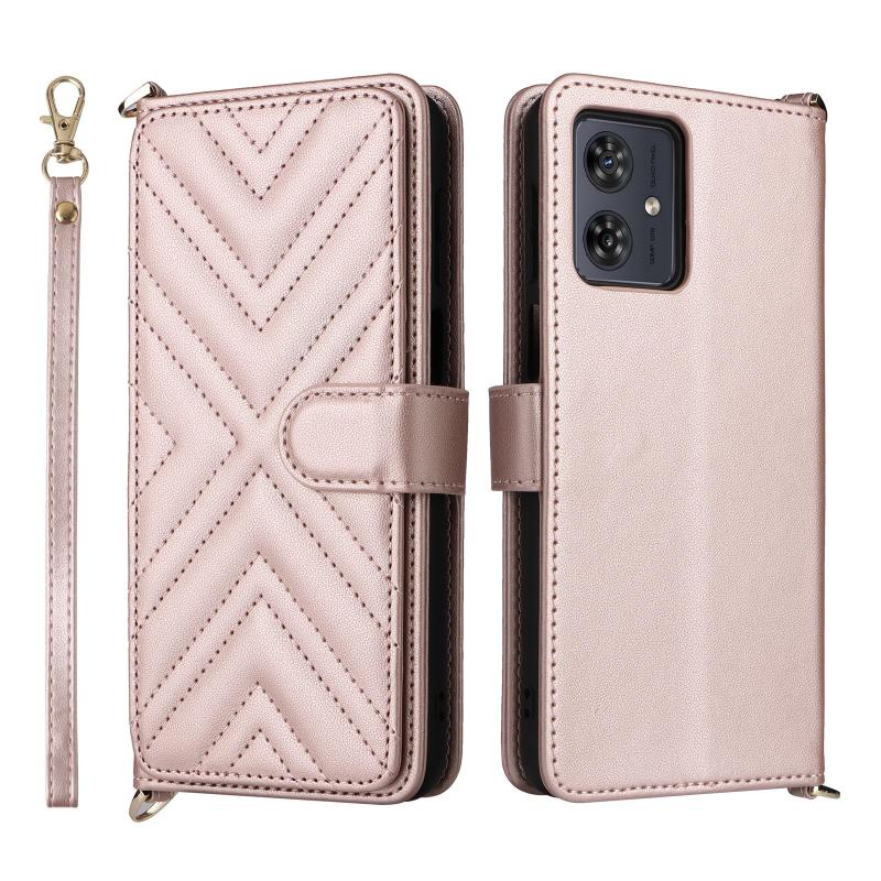 For Motorola Moto G54 5G / G54 Power 5G Multifunctional 6-Card Slots Leather Phone Case with Wrist Strap(Pink)