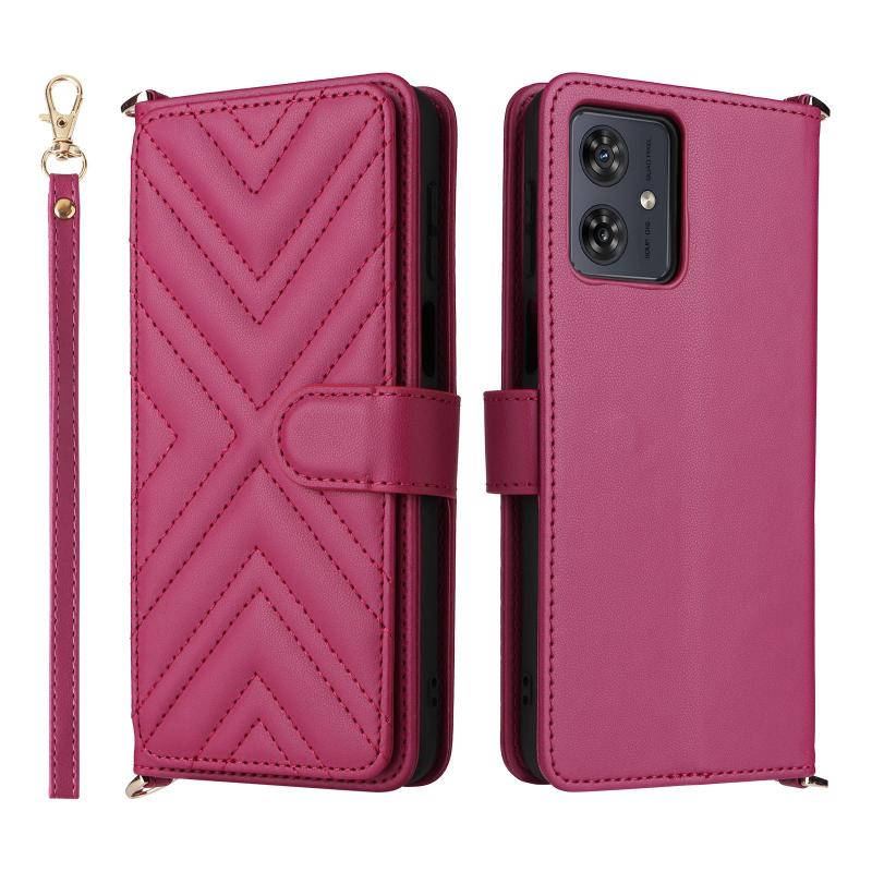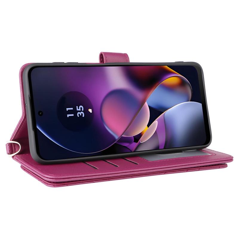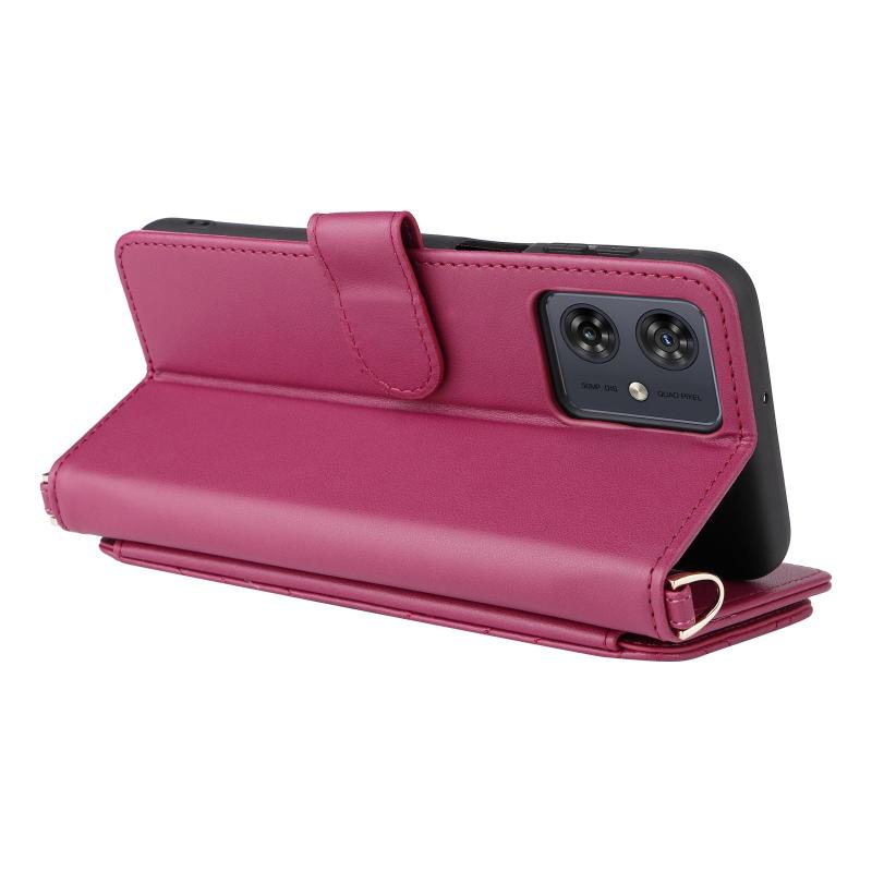 For Motorola Moto G54 5G / G54 Power 5G Multifunctional 6-Card Slots Leather Phone Case with Wrist Strap(Rose Red)