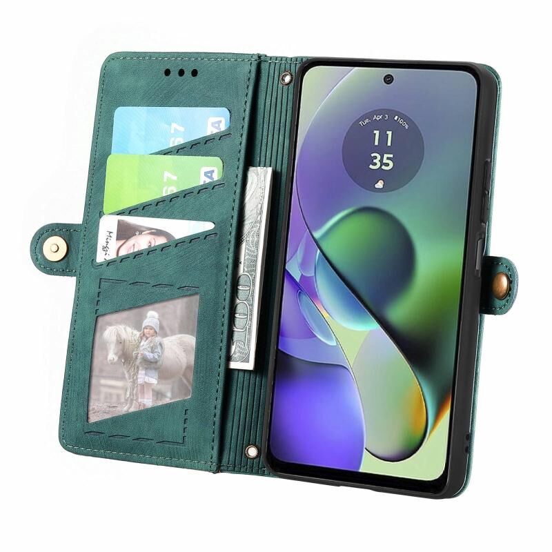Θήκη κινητού τηλεφώνου δερμάτινη με φερμουάρ και πλευρική αγκράφα για Motorola Moto G54 5G (Κόκκινο)
