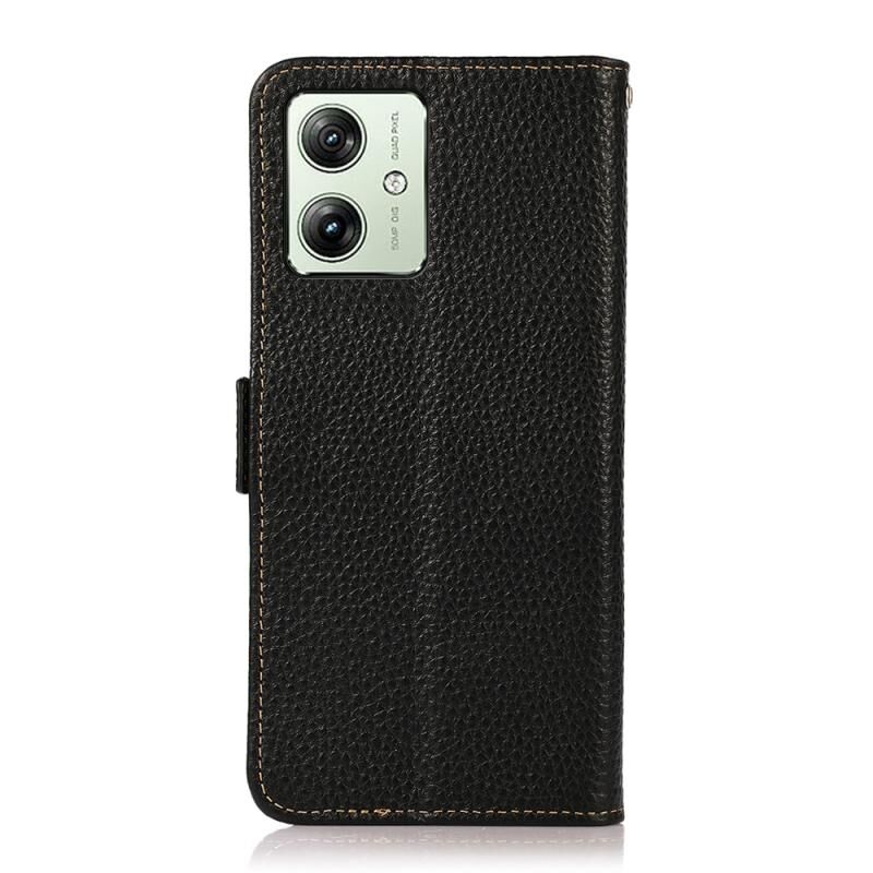 Θήκη τηλεφώνου Motorola Moto G54 5G KHAZNEH με μαγνητικό κλείσιμο, γνήσιο δέρμα Litchi, RFID (Μαύρο)