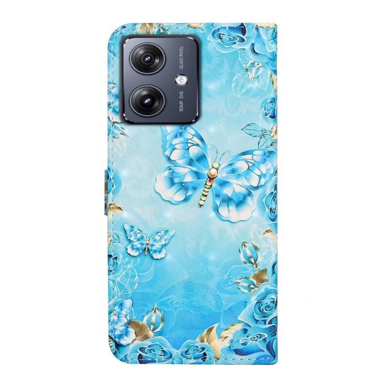 Θήκη τηλεφώνου δερμάτινη με ανάγλυφο σχέδιο λαδιού και 3D σχέδιο για Motorola Moto G54 5G (Μπλε Πεταλούδες)