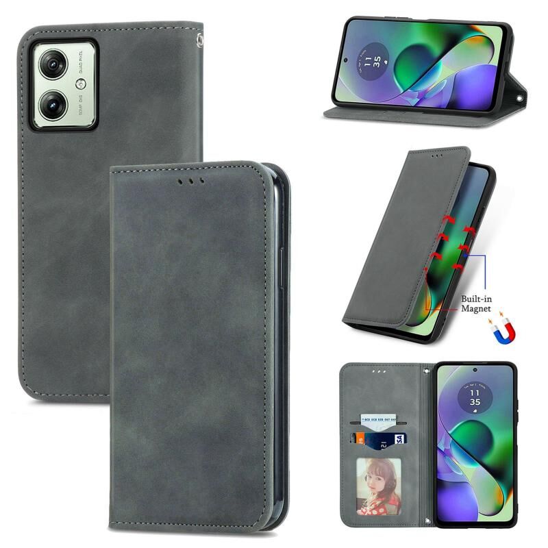 Για Motorola Moto G54 5G Retro Skin Feel Μαγνητική θήκη τηλεφώνου από δέρμα (γκρι)