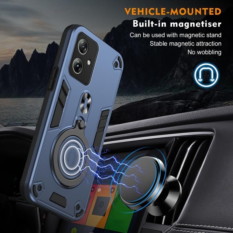 Για Motorola Moto G54 Βραζιλία έκδοση μεταλλικό δαχτυλίδι 360 μοίρες περιστρεφόμενη κάτοχος PC υβριδικό TPU τηλέφωνο υπόθεση (Ναυτικό μπλε)