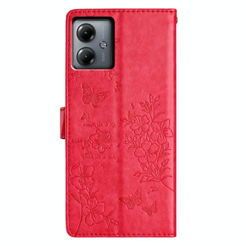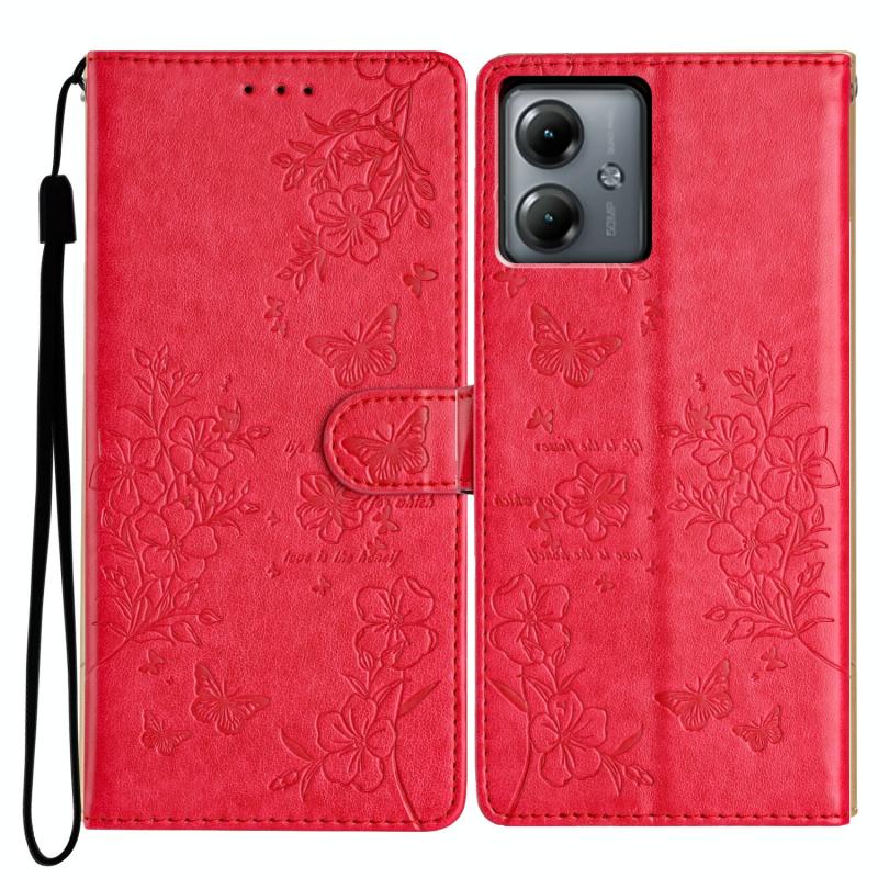For Motorola Moto G54 Butterflies and Flowers Leather Phone Case(Red)