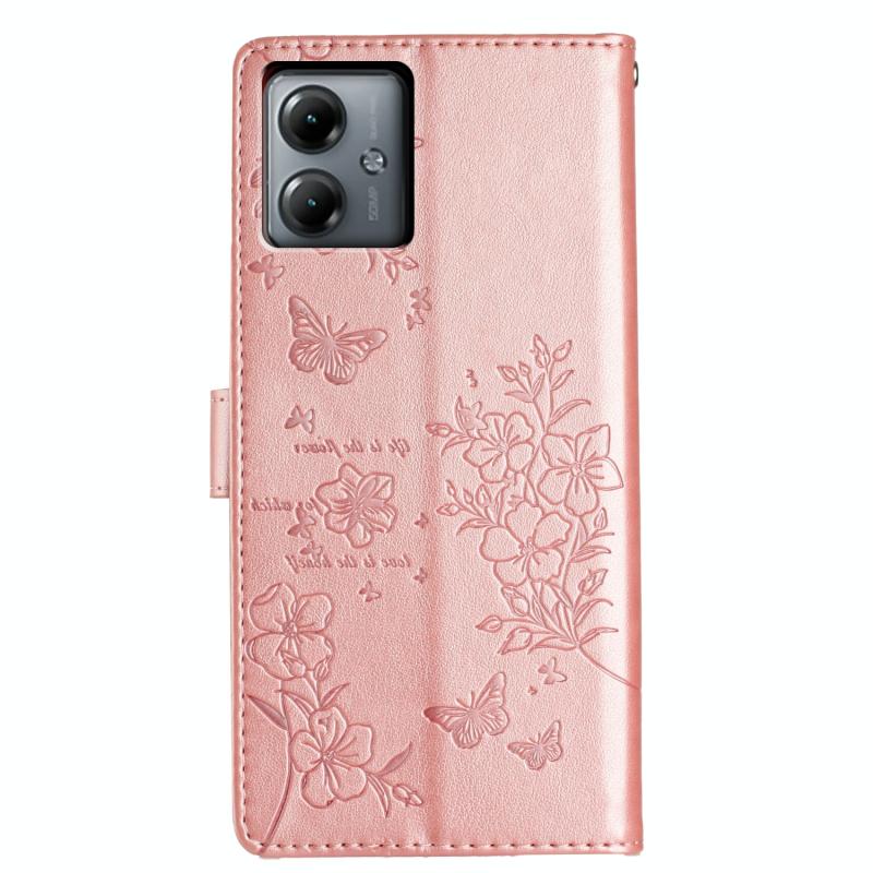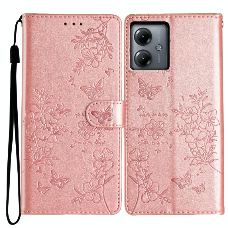 For Motorola Moto G54 Butterflies and Flowers Leather Phone Case(Rose Gold)