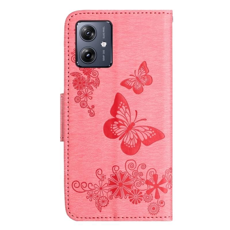 Θήκη τηλεφώνου από δέρμα με ανάγλυφο σχέδιο πεταλούδας για Motorola Moto G54 (Μωβ)
