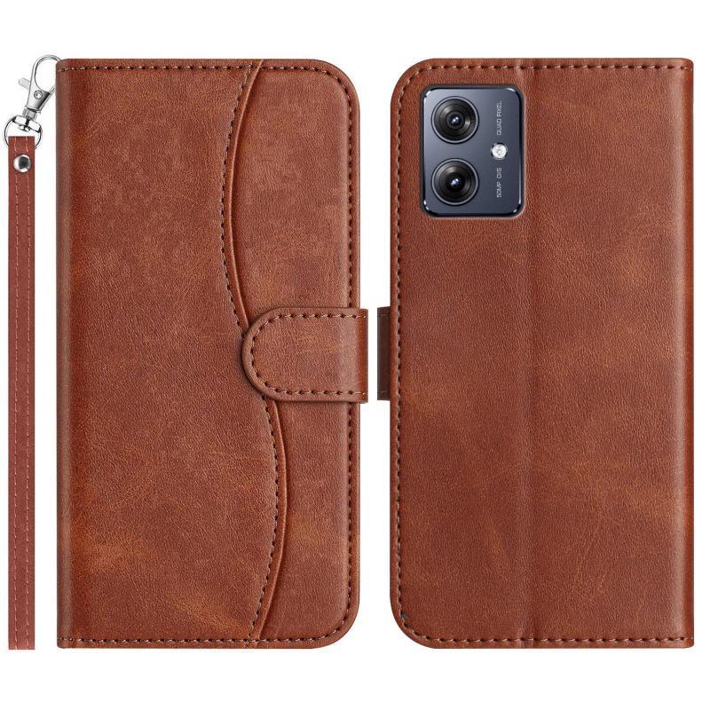 For Motorola Moto G54 Dual-Folded S-shape Leather Phone Case(Coffee)