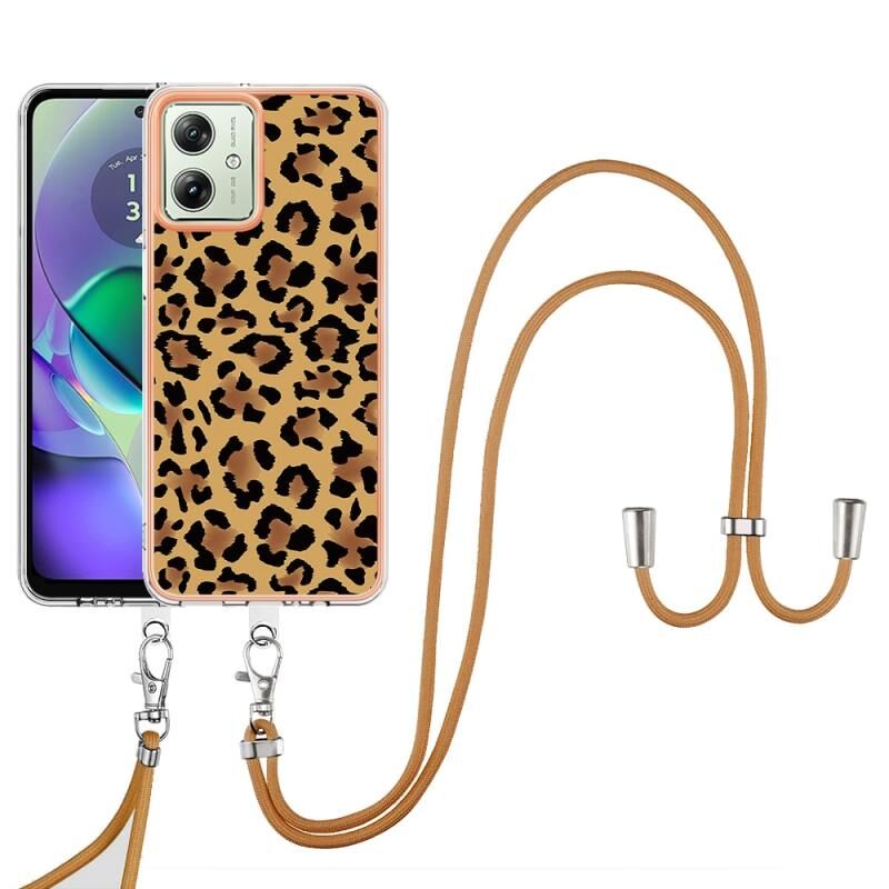 Θήκη τηλεφώνου για Motorola Moto G54 με επιμετάλλωση, διπλής όψης IMD με κορδόνι (εκτύπωση λεοπάρδαλης)