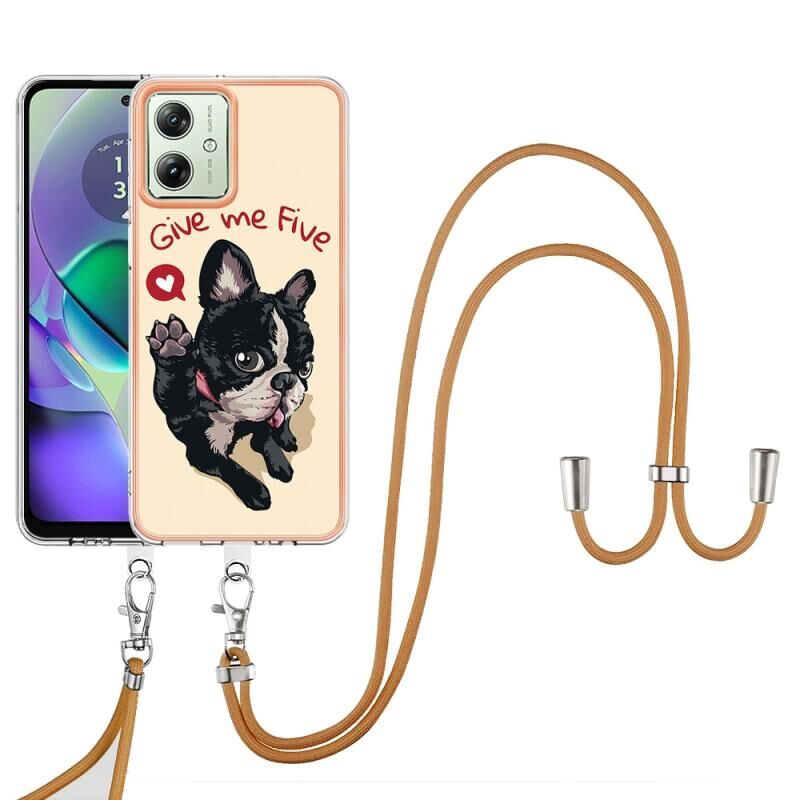 Θήκη τηλεφώνου για Motorola Moto G54 με επιμετάλλωση, διπλής όψης IMD με κορδόνι (Lucky Dog)