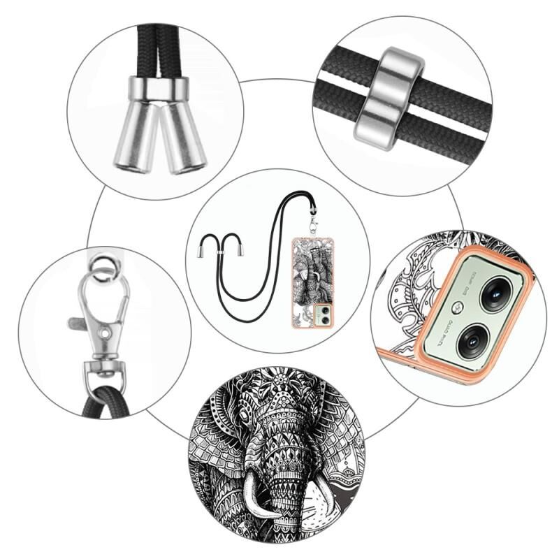 Θήκη τηλεφώνου για Motorola Moto G54 με επιμετάλλωση, διπλής όψης IMD με κορδόνι (Totem Elephant)