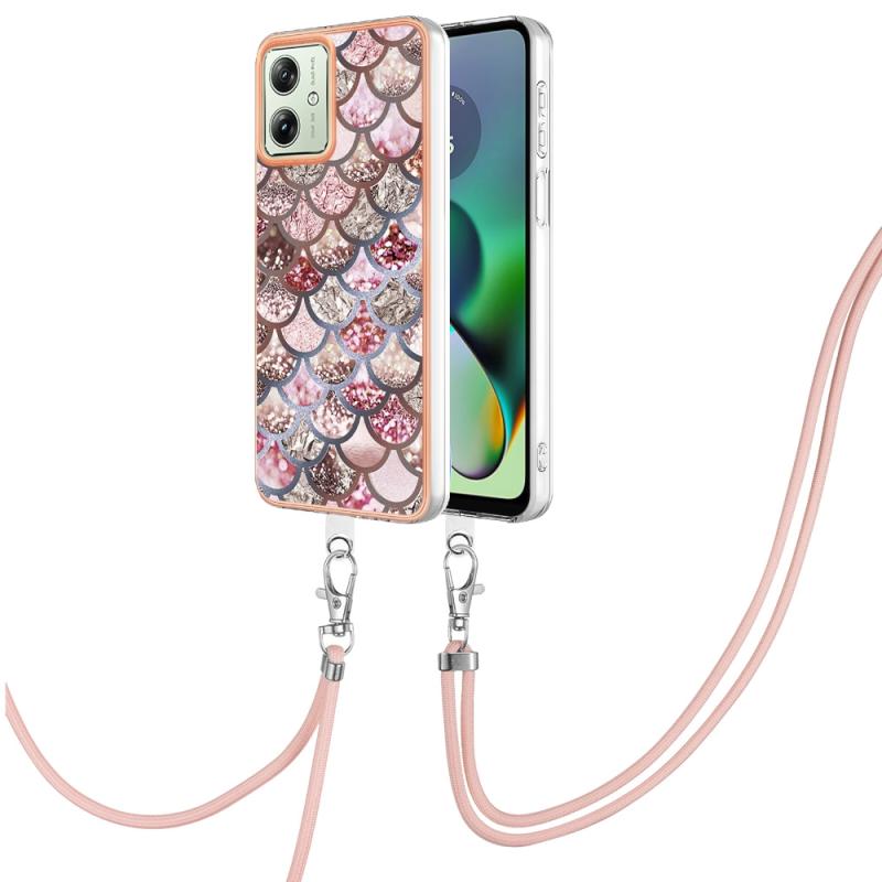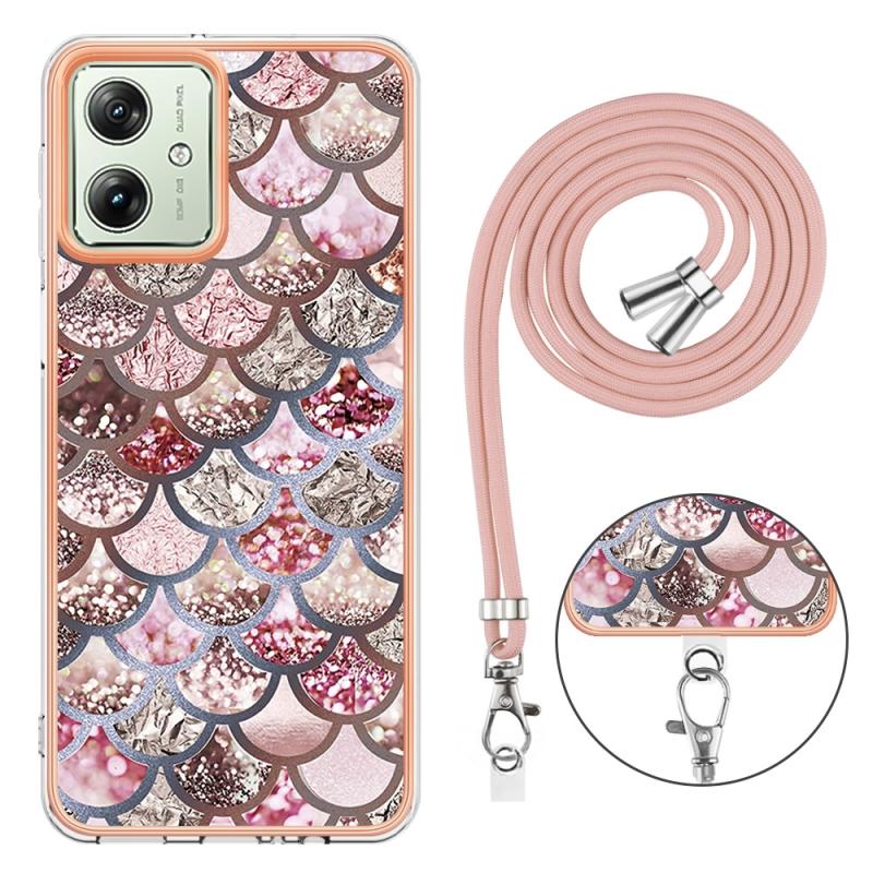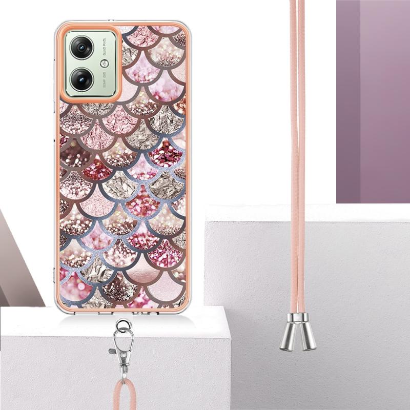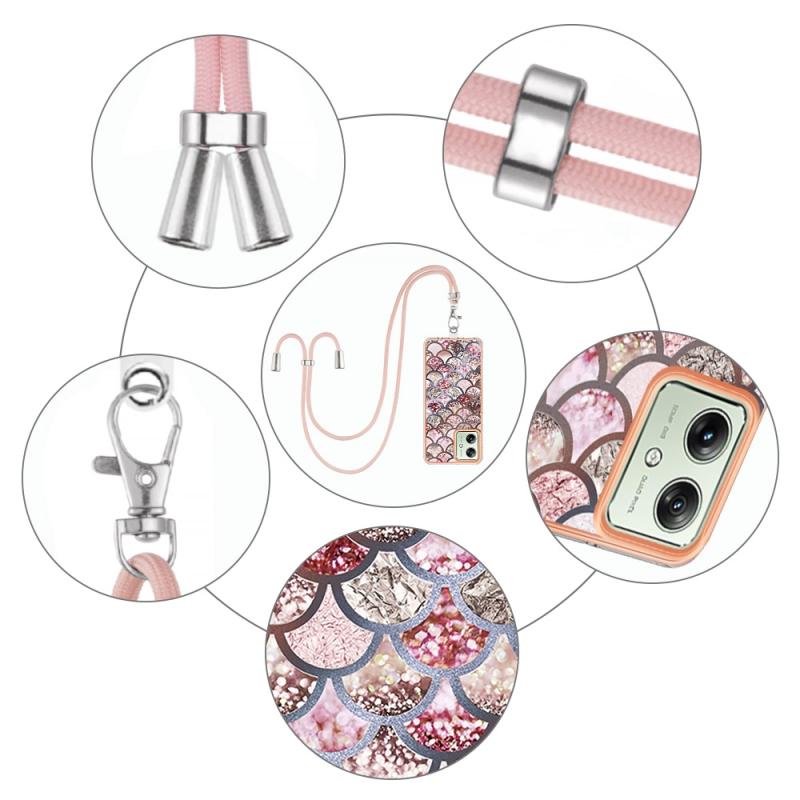 Θήκη κινητού τηλεφώνου για Motorola Moto G54 με ηλεκτρολυτική επιμετάλλωση IMD TPU με κορδόνι (Ροζ Λέπια)