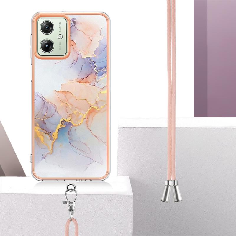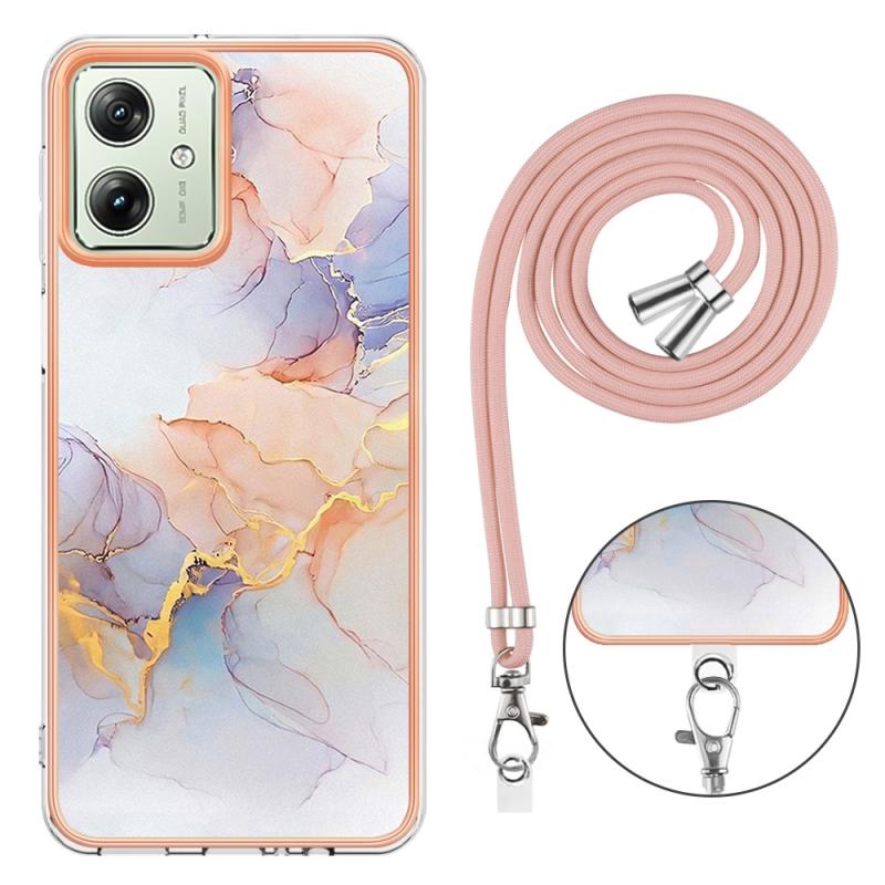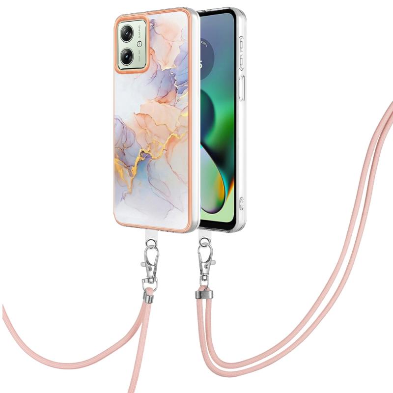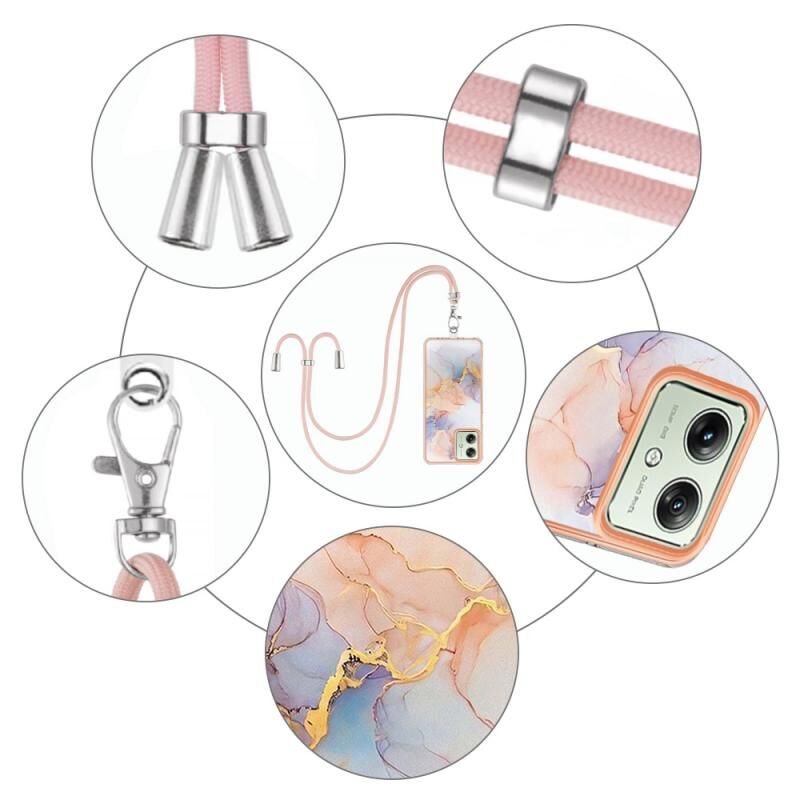 Θήκη κινητού τηλεφώνου για Motorola Moto G54 με ηλεκτρολυτική επιμετάλλωση IMD TPU με κορδόνι (Ροζ Λέπια)