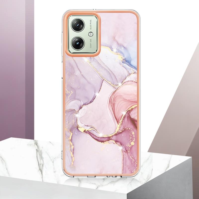 For Motorola Moto G54 Electroplating Marble Dual-side IMD Phone Case(Rose Gold 005)