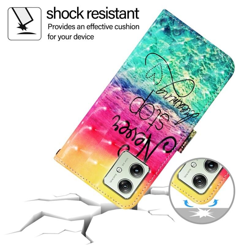 Θήκη τηλεφώνου από δέρμα με οριζόντιο άνοιγμα και τρισδιάστατη ζωγραφική για Motorola Moto G54 έκδοση ΕΕ / Βραζιλίας (Κυνηγώντας Όνειρα)