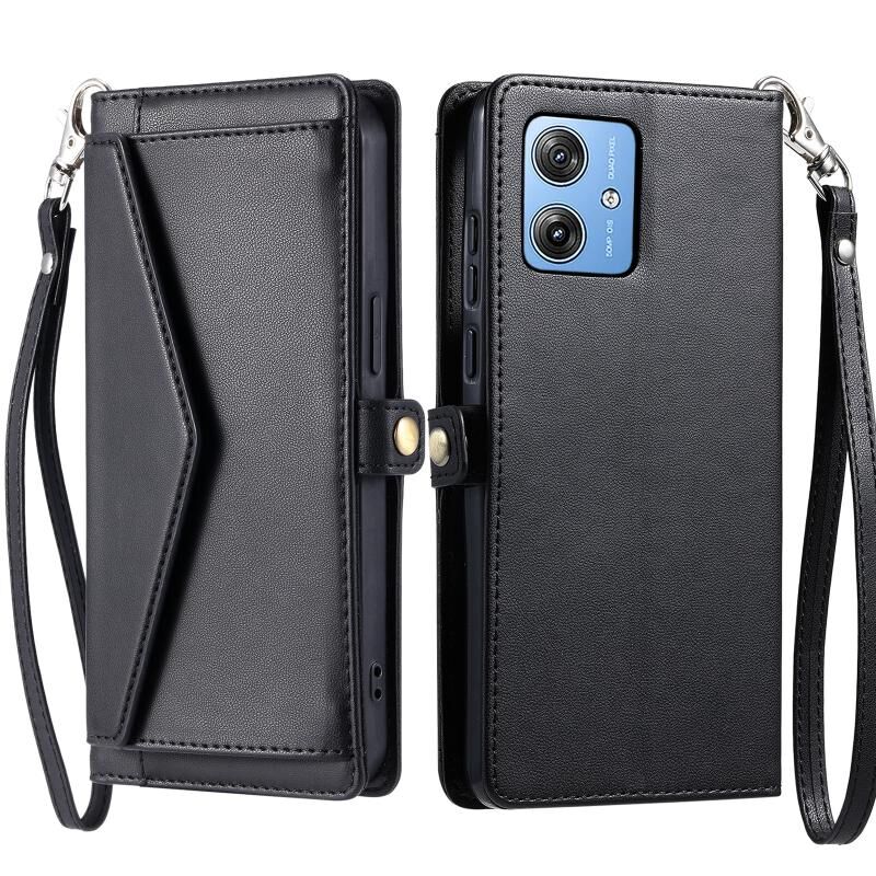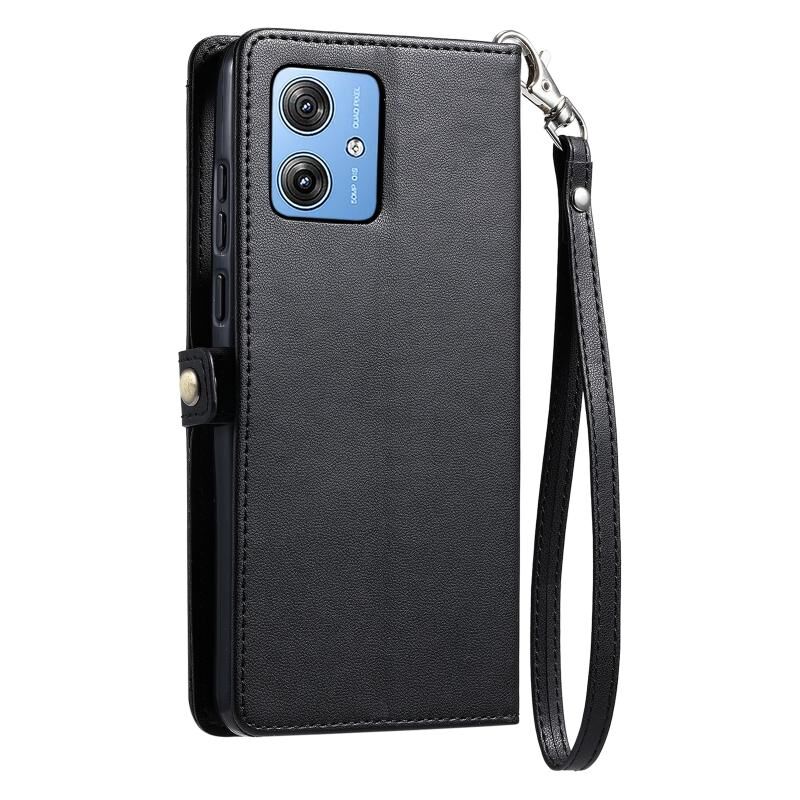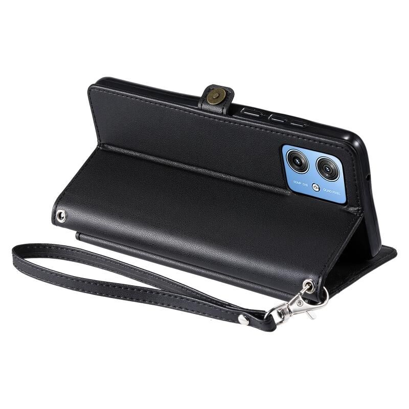 Για Motorola Moto G54 / G64 Πορτοφόλι Υποδοχή πολλαπλών καρτών Δερμάτινη θήκη τηλεφώνου με κορδόνι (Μαύρο)