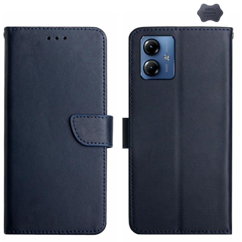 For Motorola Moto G54 Genuine Leather Fingerprint-proof Horizontal Flip Phone Case(Blue)