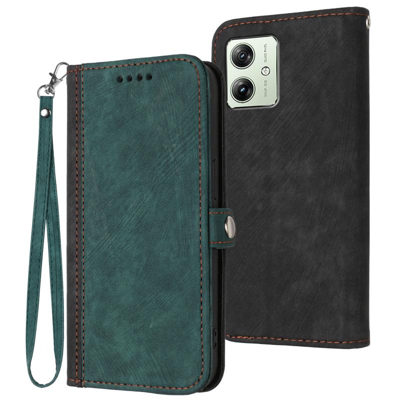 For Motorola Moto G54 Global Side Buckle Double Fold Hand Strap Leather Phone Case(Dark Green)