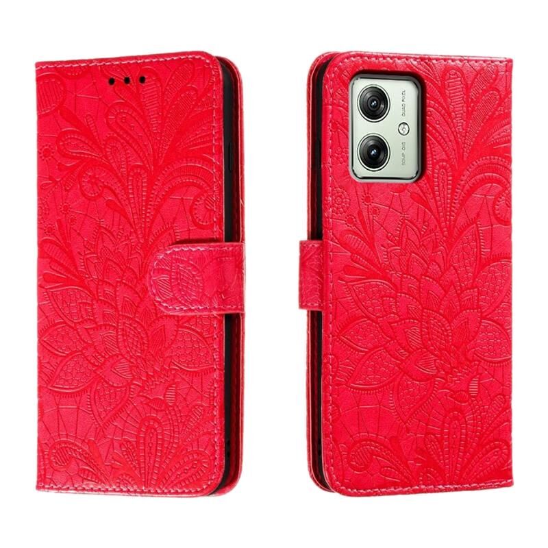 Για Motorola Moto G54 Lace λουλούδι ανάγλυφο Flip δερμάτινη θήκη τηλεφώνου (Κόκκινο)