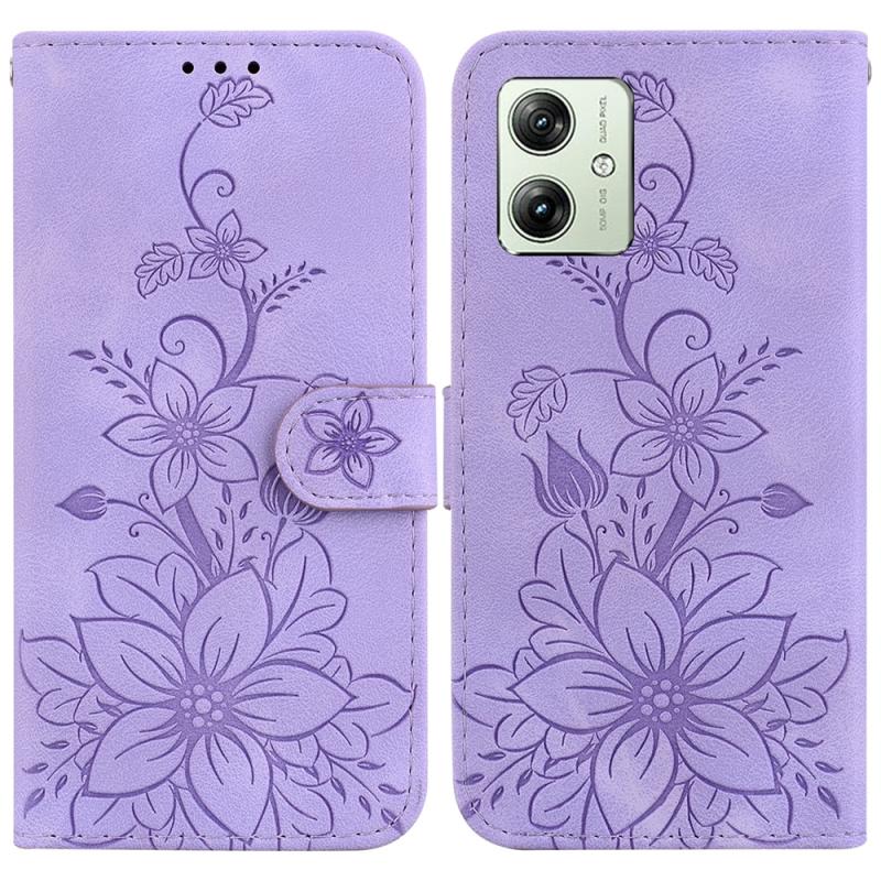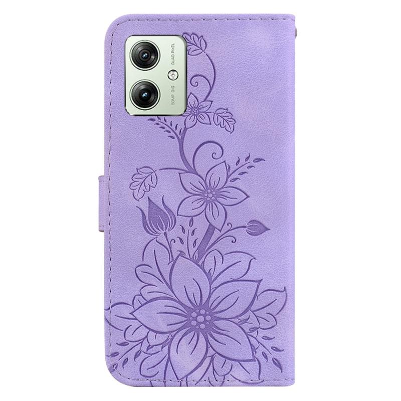 For Motorola Moto G54 Lily Embossed Leather Phone Case(Purple)