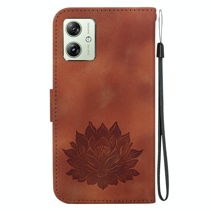 For Motorola Moto G54 Lotus Embossed Leather Phone Case(Brown)