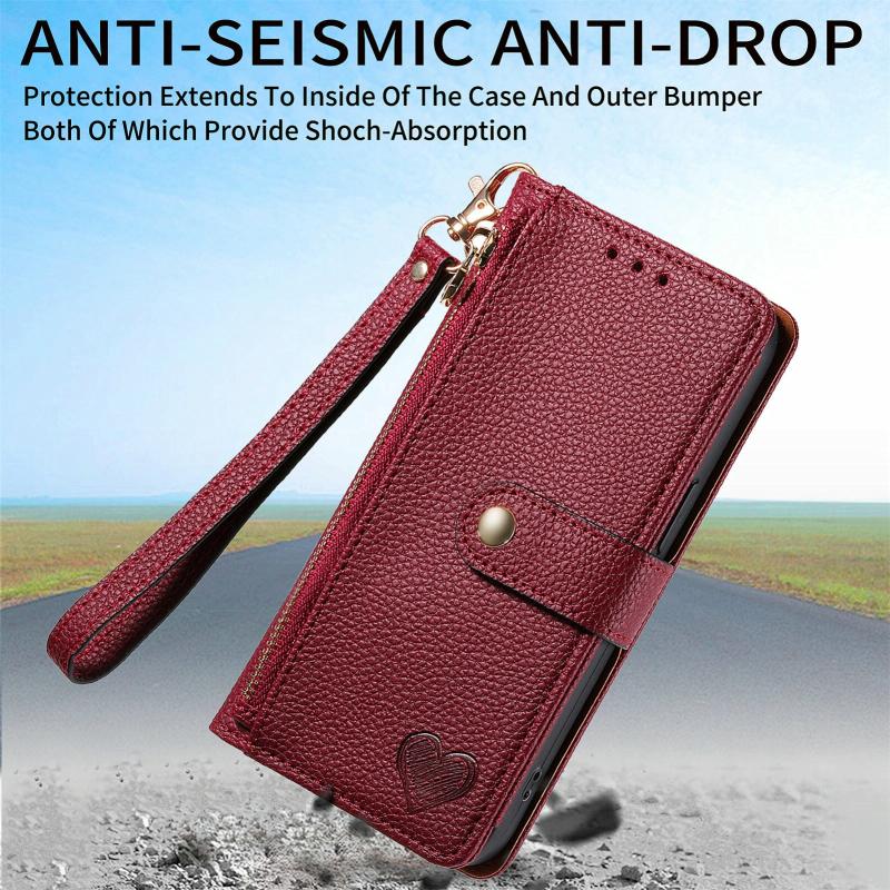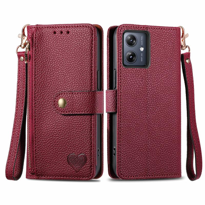 Για Motorola Moto G54 Θήκη Δερμάτινη με Λουρί και Φερμουάρ Love (Κόκκινο)