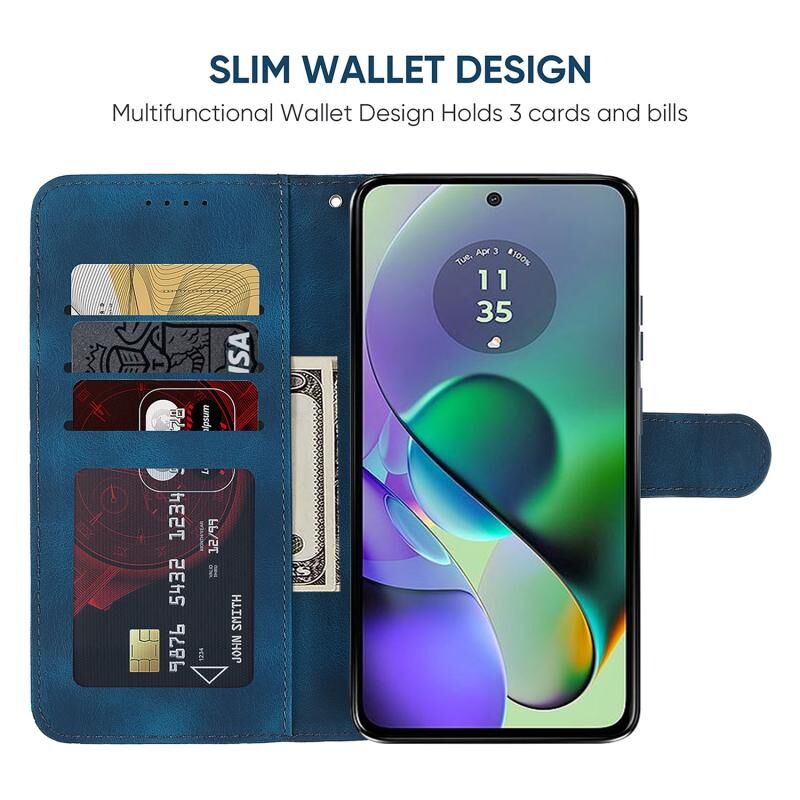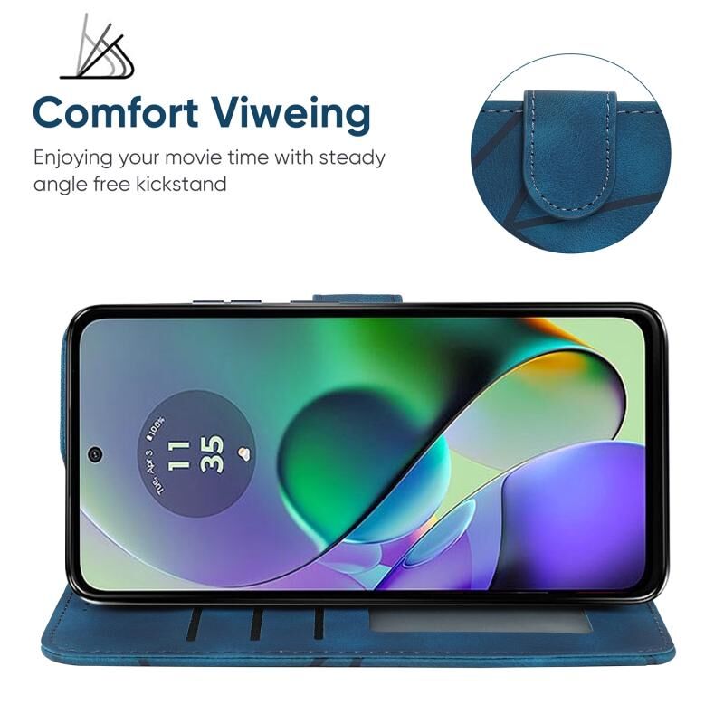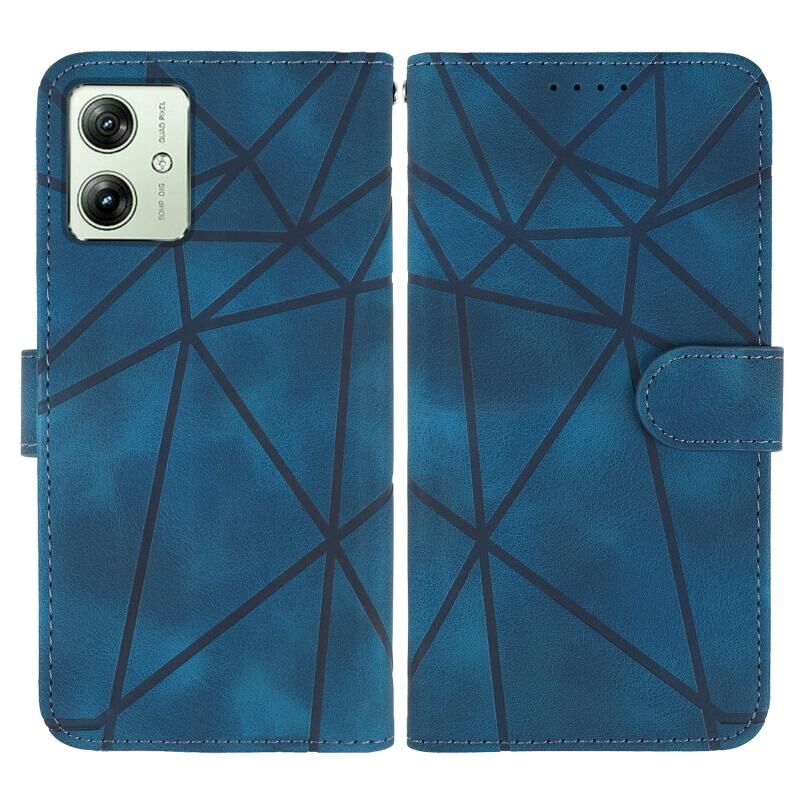 Για Motorola Moto G54 Skin Feel γεωμετρικές γραμμές δερμάτινη θήκη τηλεφώνου (μπλε)