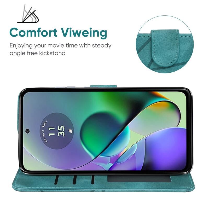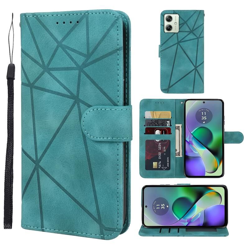 Για Motorola Moto G54 Skin Feel γεωμετρικές γραμμές δερμάτινη θήκη τηλεφώνου (πράσινο)
