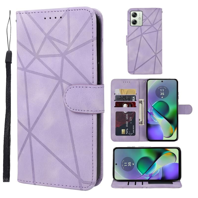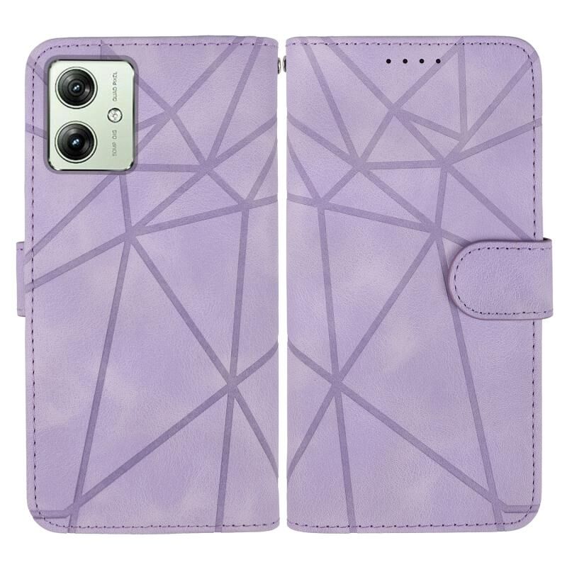 Για Motorola Moto G54 Skin Feel Γεωμετρικές γραμμές δερμάτινη θήκη τηλεφώνου (μωβ)