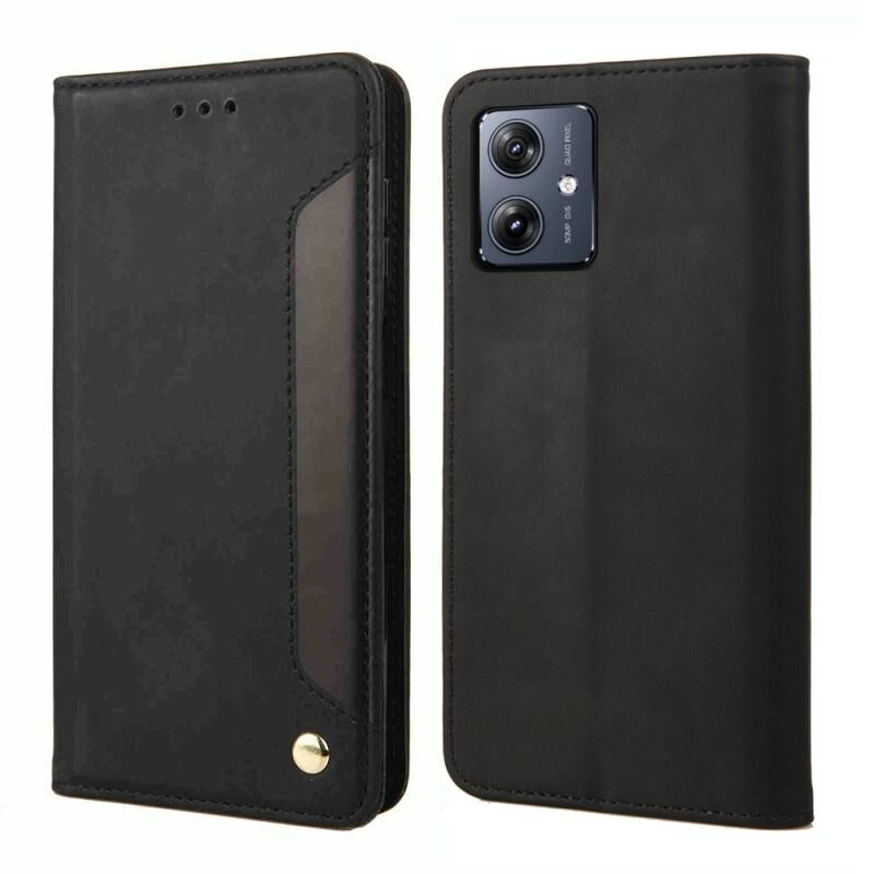 Για Motorola Moto G54 Skin Feel Splicing δερμάτινη θήκη τηλεφώνου (μαύρο)